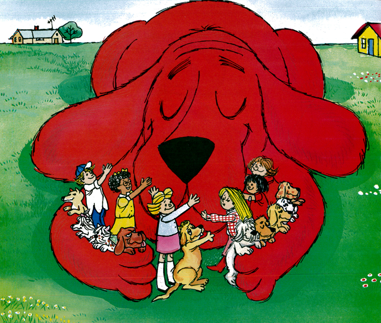 상에서 가장 빨갛고, 큰 강아지. 머리끝에서 발끝까지 7.6m나 되는 10살의 슈퍼 자이언트 독이다. 죽은 척 연기의 달인. 파라마운트 픽쳐가 실사판 영화화 추진중