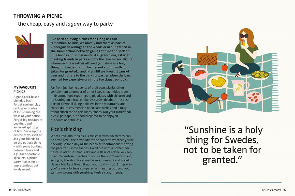 잘 먹고 잘사는 법에 대한 사람들의 관심은 ‘웰빙’, ‘힐링’, ‘욜로’, ‘휘게’ 등 다양한 삶의 방식을 대두시키곤 했다. 세계적인 트렌드세터이자 보그 편집장인 안나 윈투어는 이제 덴마크의 ‘휘게’를 넘어서 스웨덴의 라이프 스타일인 ‘라곰’의 시대가 도래할 거라 예상했다. 삶의 균형을 추구하는 ‘라곰’에는 바쁜 일상 속에 커피 한 잔으로 여유를 갖는 ‘피카 Fika’라는 문화가 있다. 이 또한 가필드가 누리고 있는 삶의 방식 중 하나 아닌가. 가필드는 독자를 향해 이렇게 말한다.