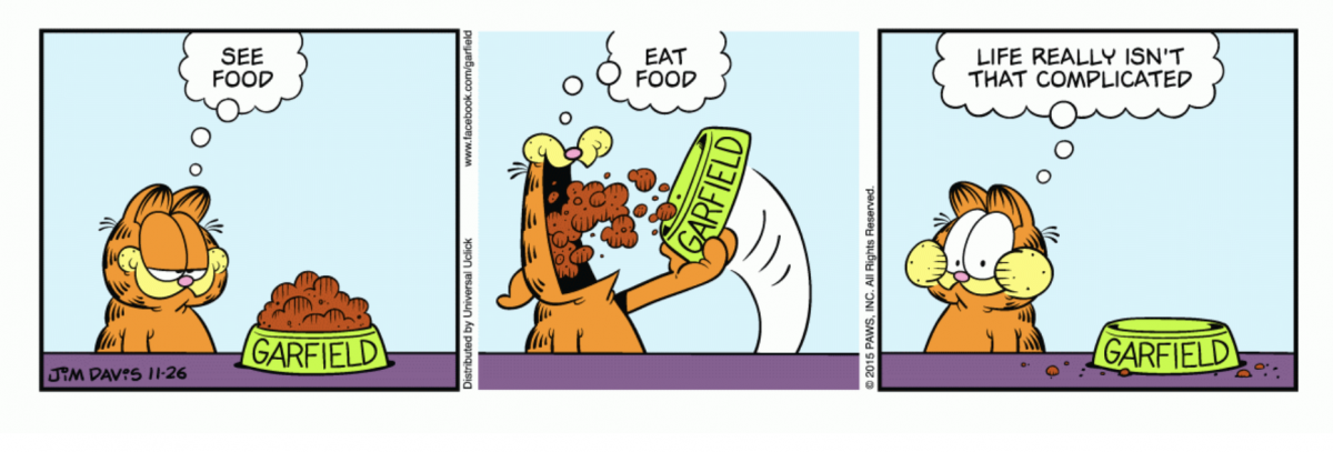 “음식을 보고, 먹어! 삶은 정말 복잡하지 않아!”